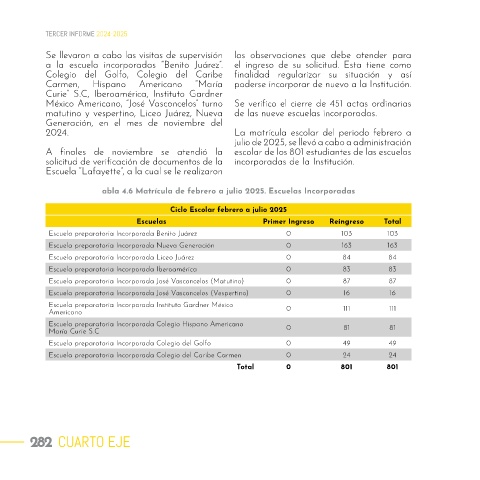 abla 4.6 Matrícula de febrero a julio 2025. Escuelas Incorporadas