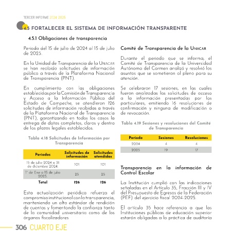 entrega de datos completos, claros y dentro Tabla 4.19 Sesiones y resoluciones del Comité