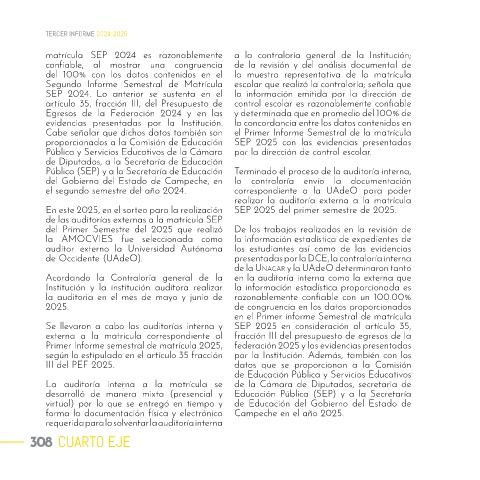 matrícula SEP 2024 es razonablemente a la contraloría general de la Institución;