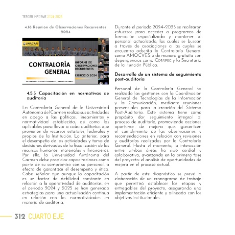 4.16 Reunión de Observaciones Recurrentes Durante el periodo 2024–2025 se realizaron