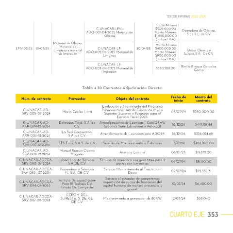LPN-02-25 21/03/25 Limpieza y material C-UNACAR-LP- 30/04/25 $400,000.00 Global Clean del