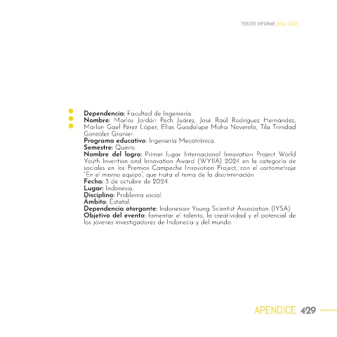 Youth Invention and Innovation Award (WYIIA) 2024 en la categoría de