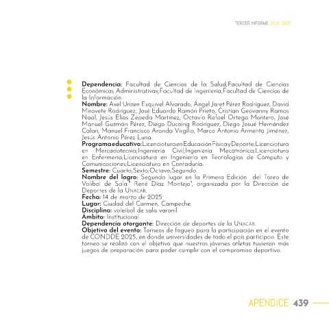 Dependencia otorgante: Dirección de deportes de la Unacar.