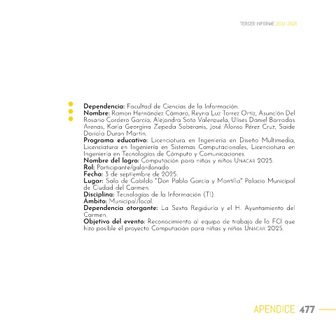Nombre del logro: Computación para niñas y niños Unacar 2025.