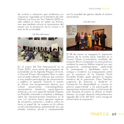 artísticas y un ciclo especial titulado Mujeres arte. Durante el evento, se ofreció la charla