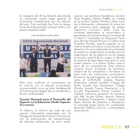 la categoría de 45 kg femenil, alcanzando superior. La secretaria Académica, doctora