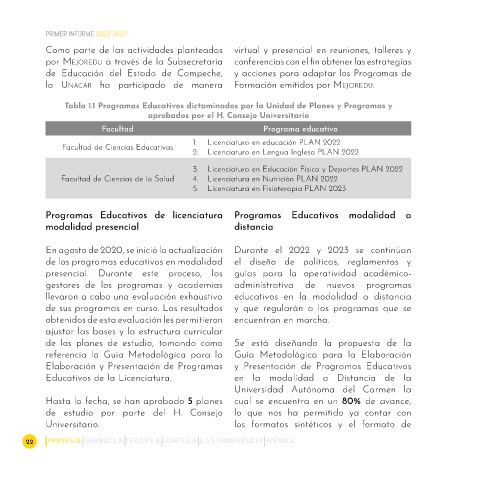 Tabla 1.1 Programas Educativos dictaminados por la Unidad de Planes y Programas y