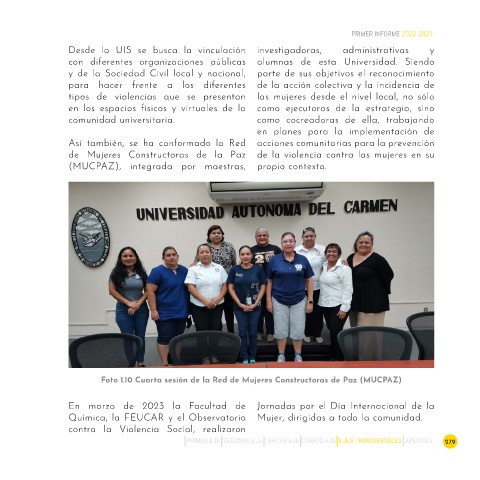 Foto 1.10 Cuarta sesión de la Red de Mujeres Constructoras de Paz (MUCPAZ)