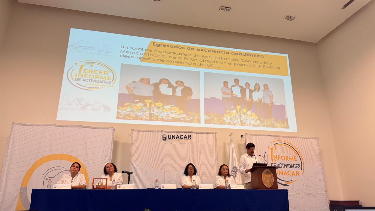 Ciudad del Carmen, Campeche, 20 de enero de 2026.— La Facultad de Ciencias Económicas Administrativas (FCEA) de la Universidad Autónoma del Carmen presentó su Informe de Actividades 2024–2025, encabezado por el Mtro. Juan Carlos López Cabañas, Director de la Facultad, destacando avances significativos en formación integral del estudiante, investigación con impacto social, vinculación comunitaria y fortalecimiento de la infraestructura académica.