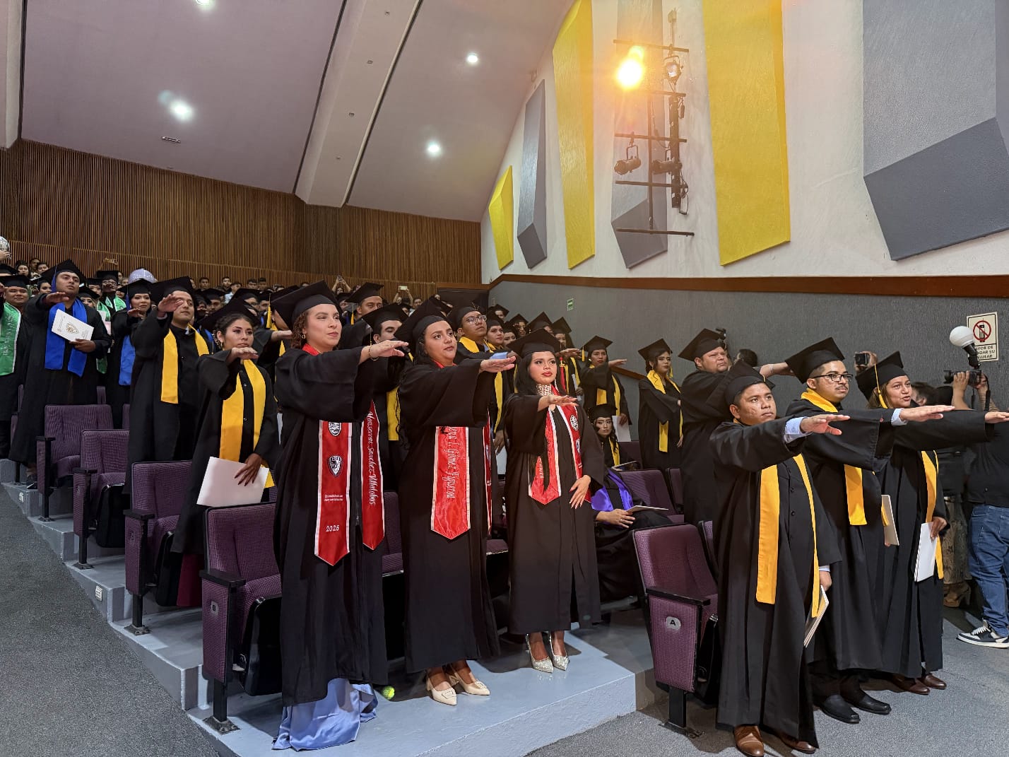 Posteriormente, los egresados recibieron sus documentos académicos ante el Honorable Presídium, para después dar paso a uno de los momentos más significativos: la toma de protesta profesional, encabezada por la rectora. En total, 71 egresados realizaron este acto solemne, luego de haber obtenido su titulación mediante el Examen General de Egreso de Licenciatura (EGEL) o por la modalidad de tesis.