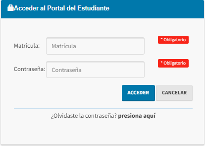 Deberás de proporcionar tu usuario y contraseña para acceder al portal, el cual es tu matrícula y tu fecha de nacimiento respectivamente en el siguiente formato dd/mm/aa: